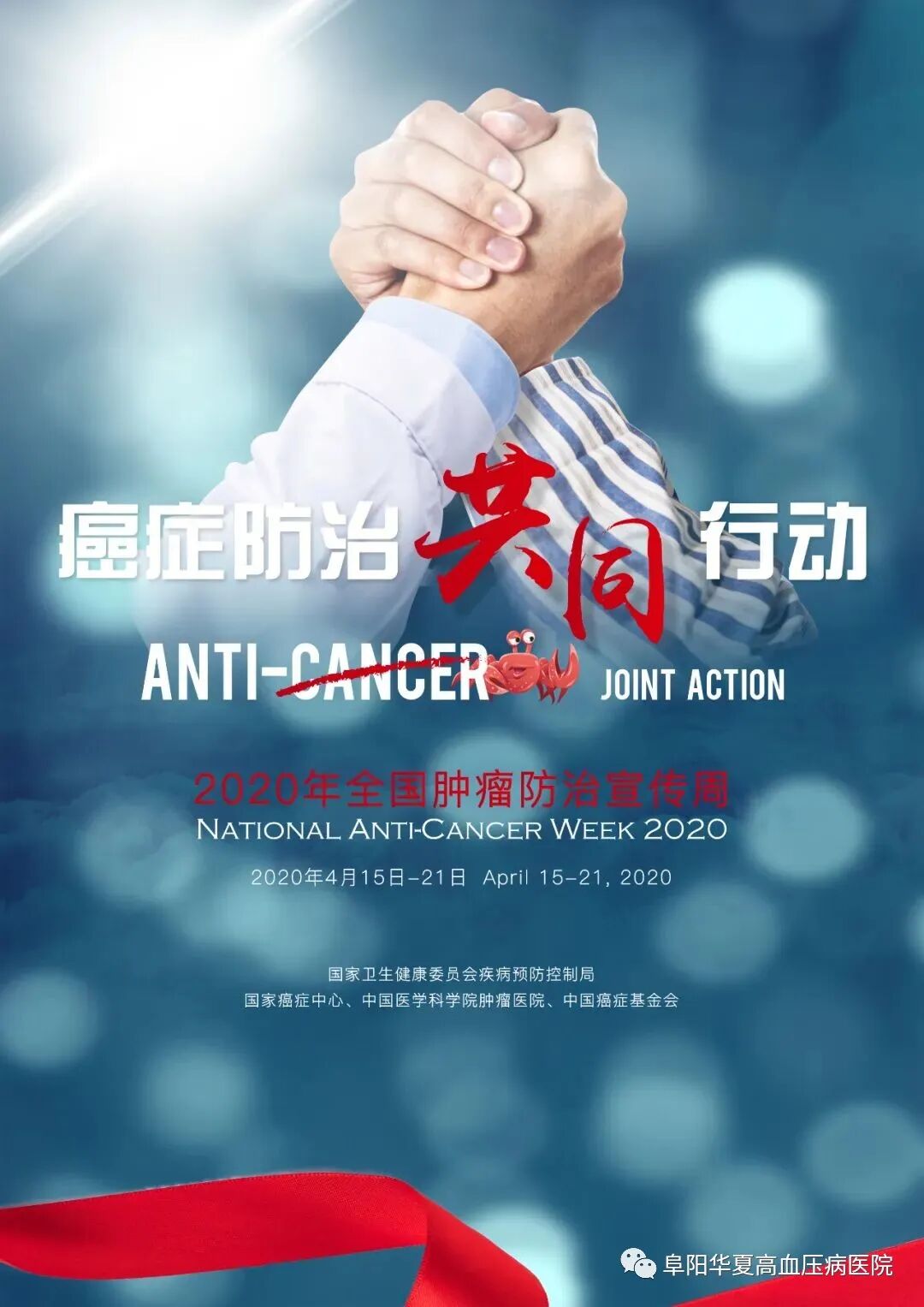 2020年4月15日~21日 是第26个全国肿瘤防治宣传周 今年宣传周主题是“癌症防治 共同行动” 世界卫生组织提出:三分之一的癌症完全可以预防;三分之一的癌症可以通过早期发现得到根治;三分之一的癌症可以运用现有的医疗措施延长生命、减轻痛苦、改善生活质量。 我们可以通过三级预防来进行癌症的防控,一级预防是病因预防,减少外界不良因素的损害;二级预防是早期发现,早期诊断,早期治疗;三级预防是改善生活质量,延长生存时间。国际先进经验表明,采取积极预防(如健康教育、控烟限酒、早期筛查等)、规范治疗等措施,对于降低癌症的发病和死亡具有显著效果。我国实施癌症综合防治策略较早的一些地区,癌症发病率和死亡率已呈现下降趋势。 改变不健康生活方式可以预防癌症的发生 1、世界卫生组织认为癌症是一种生活方式疾病。 规范的防癌体检能够早期发现癌症 1、防癌体检是在癌症风险评估的基础上,针对常见癌症进行的身体检查,其目的是让群众知晓自身患癌风险,发现早期癌症或癌前病变,进行早期干预。 早诊早治是提高癌症生存率的关键 (一)癌症的治疗效果和生存时间与癌症发现的早晚密切相关,发现越早,治疗效果越好,生存时间越长。 去阜阳华夏高血压病医院看高血压,门诊、住院都可以报销啦!!! 阜阳华夏高血压病医院韦刚院长指出,治疗高血压一定要选择正规的专科医院进行规范治疗。切勿病急乱投医,否则,将导致脑血管意外或脑出血,甚至永久性瘫痪等併发症发生。 韦院长预约电话:15856889156 2666120 详情请掃二维码 |