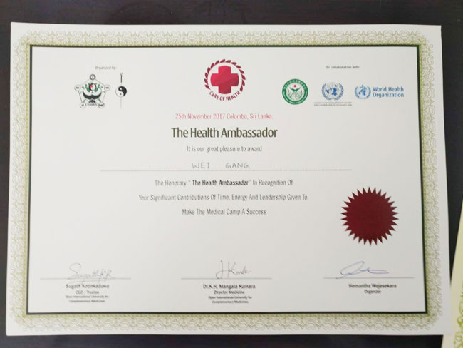 2017年11月下旬,韦刚因卓越医技水平参与国家援外医疗队前往斯里兰卡、马尔代夫参加围期二周的医疗援助活动。受到国际社会的热烈欢迎!